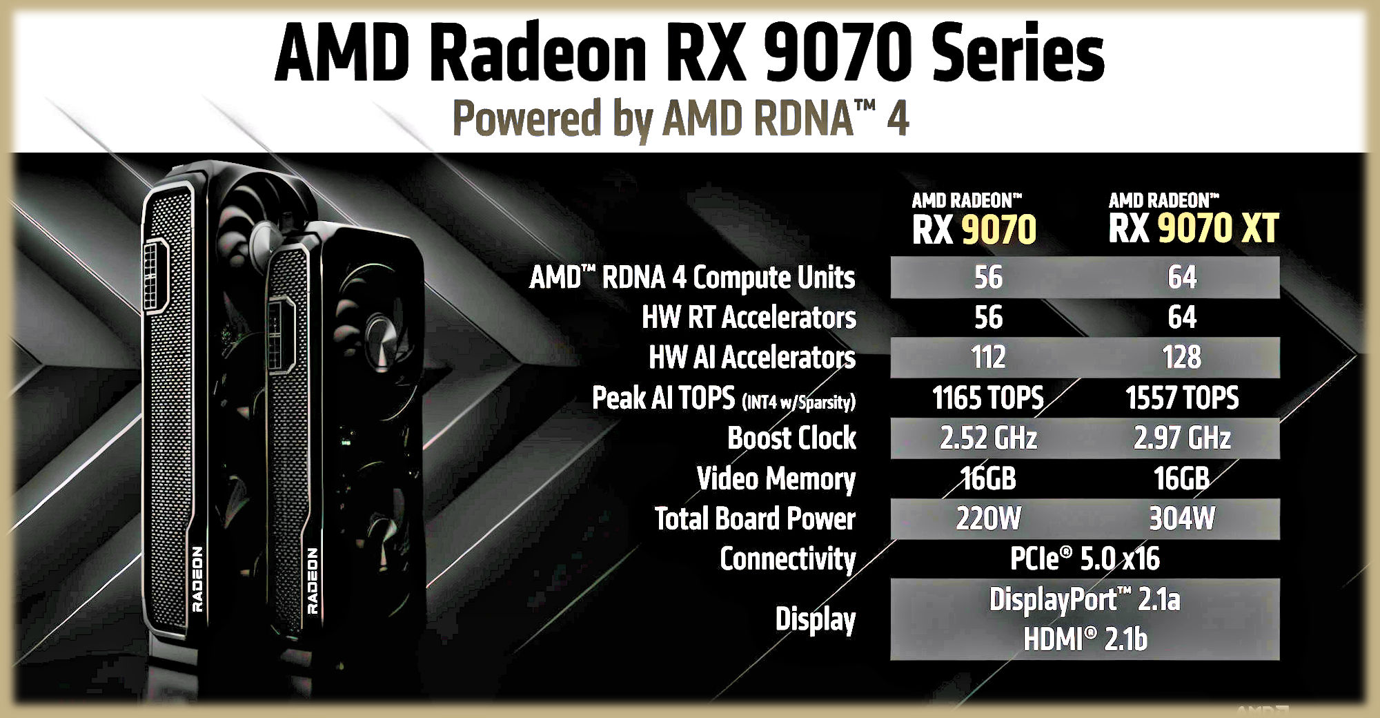 Основанные на новой архитектуре AMD RDNA 4, эти GPU поддерживают трассировку лучей третьего поколения и ряд фирменных функций AMD, разработанных для повышения производительности в среднем ценовом диапазоне. Новая архитектура работает в паре с AI-ускорителями второго поколения от AMD, которые нацелены на улучшение функциональности за пределами игр. Если вы стример или любите записывать игровой процесс, AMD заявляет, что обновленный механизм дисплея предлагает улучшения для создателей контента.