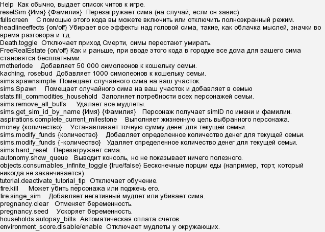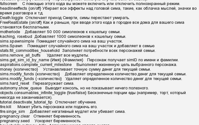 Читы для The Sims 2: Полный список кодов
