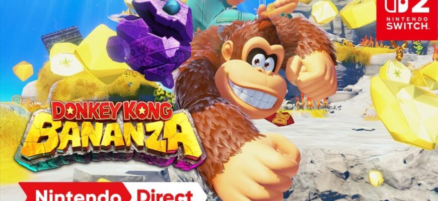 Игра Bananza, эксклюзивно для Switch 2, описывается как “новая 3D-платформенная приключенческая игра”. Игроки, управляя DK, смогут “крушить, ломать и карабкаться почти по всему, что попадется на пути, отрывая куски местности, чтобы раскачиваться и бросать их, исследуя мир совершенно по-новому”.