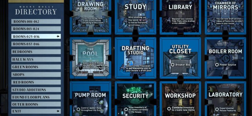 Одна “хитрость”, которую вы можете использовать, – это спроектировать Комнату зеркал, которая сама по себе довольно редкая. Эффект Комнаты зеркал позволяет дубликатам комнат снова появляться в списке выбора. Таким образом, технически, вы можете спроектировать две Мастерские, две Подсобки и так далее. Как только у вас будет семь комнат “механического” типа, молитесь богам RNG, чтобы Механариум также появился в качестве опции, чтобы вы могли его спроектировать.