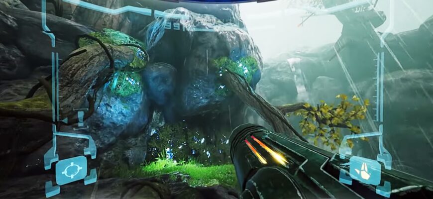 Трейлер показал, как Самус исследует планету-джунгли с колоссальным деревом в центре. Ей предстоит сканировать каменные фигуры, чтобы пробраться через густой лес, сражаясь с враждебными насекомоподобными инопланетянами. Но ей помогут новые пси-способности, такие как телекинез для решения головоломок и прохождения через двери. Похоже, какая-то психическая сила помогает ей, и в какой-то момент она называет ее `Избранной`. Трейлер заканчивается кратким взглядом на стильный новый красно-черный костюм.