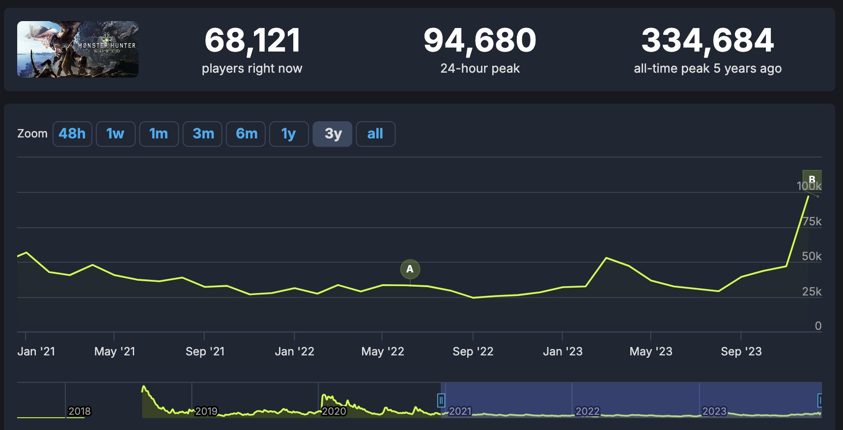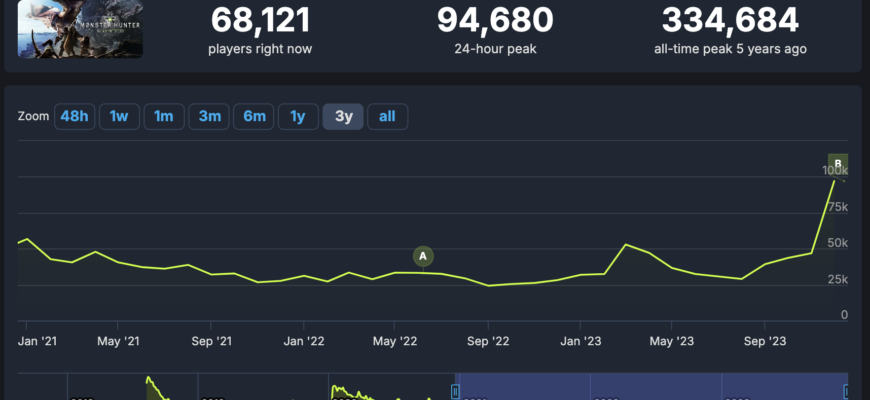Wilds особенно хорошо показывает себя в США в Steam, на который приходится более половины от общего объема долларовых продаж игры на данный момент, сообщает Circana. Wilds достигла более 1,3 миллиона одновременных игроков в Steam на старте, став пятой по популярности игрой в Steam за все время.