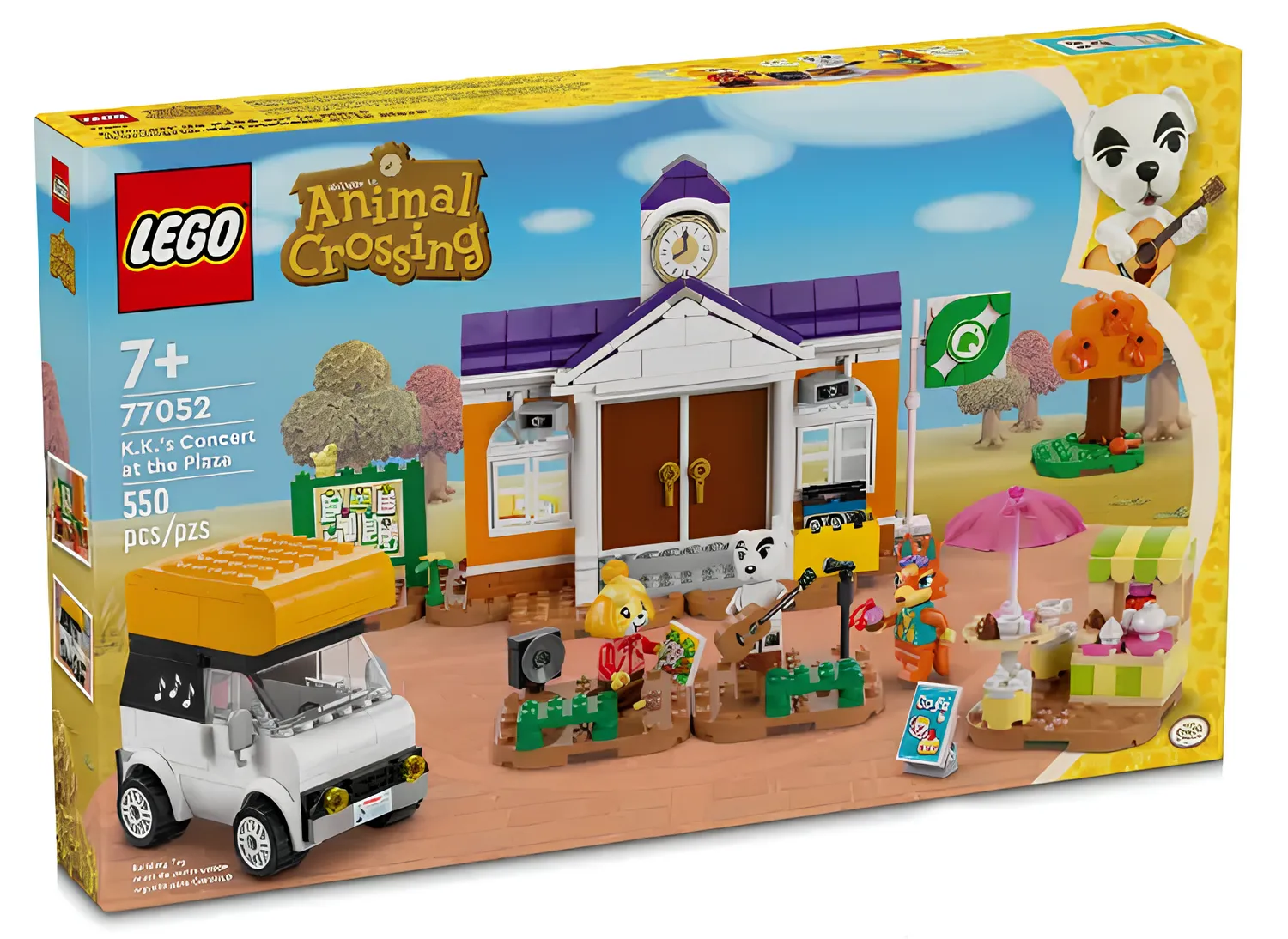 Вместе с К.К. Слайдером, этот набор Lego Animal Crossing включает фигурки Изабель и Одри, которых можно разместить на сборной сцене. Набор из 550 деталей позволяет фанатам воссоздать здание службы поддержки жителей, а также передвижной фургон, портативное кафе и различные украшения, такие как настраиваемый флаг. Каждая фигурка Animal Crossing может держать небольшие аксессуары. Конечно же, К.К. может держать свою акустическую гитару.