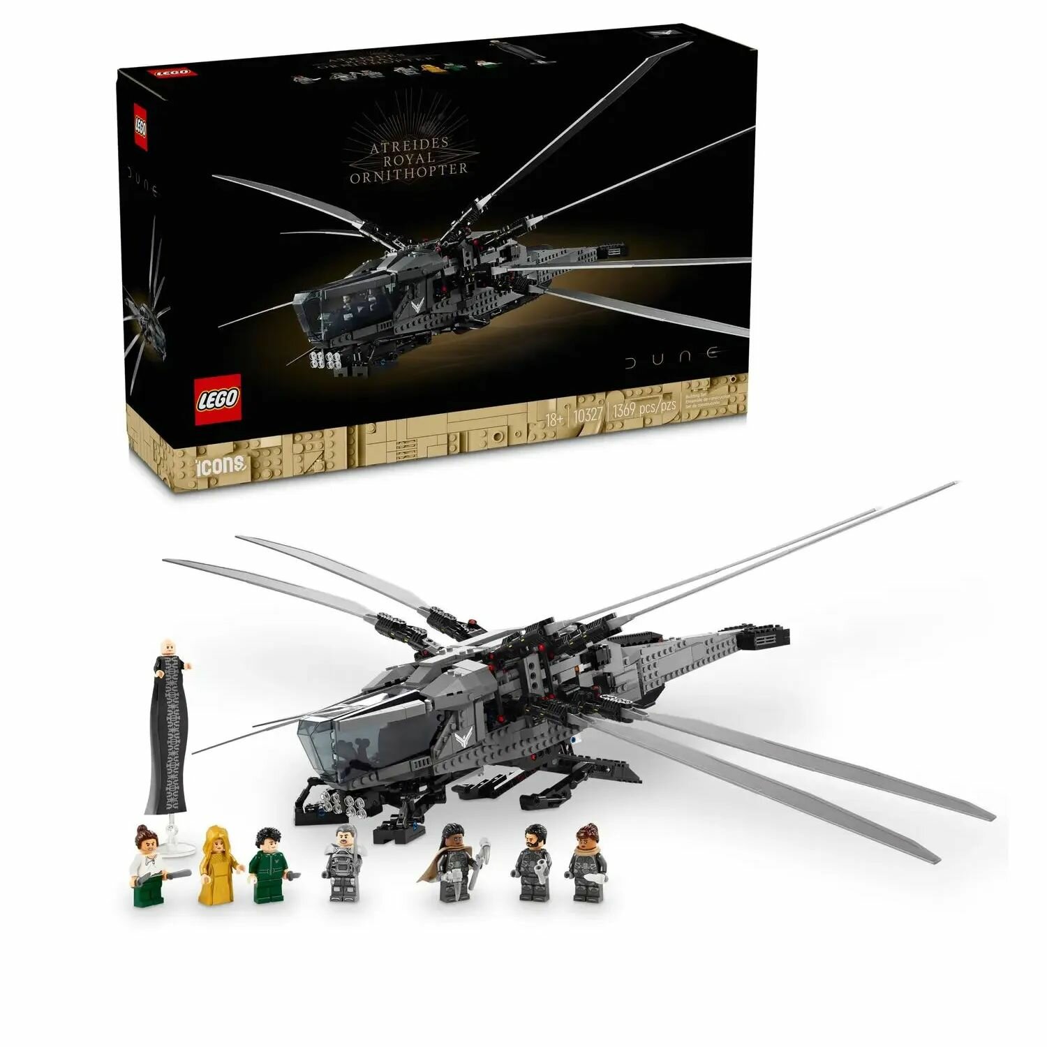 Королевский орнитоптер Атрейдесов из серии “Дюна” состоит из 1369 деталей. Собрав их вместе, вы получите точную копию летательного аппарата высотой более 22 см, длиной 56 см и шириной 79 см. Его большие крылья полностью подвижны, есть выдвижное шасси, а задняя рампа может убираться для придания более обтекаемого вида.