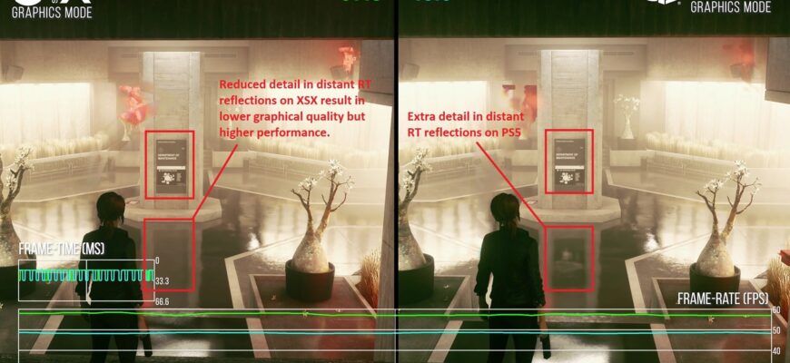 На PS5 Pro характеристики выглядят более впечатляюще: режим “Производительность” – это масштабированное 4K с 60 кадрами в секунду и стандартной трассировкой лучей, в то время как режим “Качество” – это масштабированное 4K с 30 кадрами в секунду и расширенной трассировкой лучей. Как и на обычной PS5, режим “Сбалансированный” на PS5 Pro также требует дисплей 120/240 Гц и HDMI 2.1, предлагая масштабированное 4K изображение с 40 кадрами в секунду и расширенной трассировкой лучей.