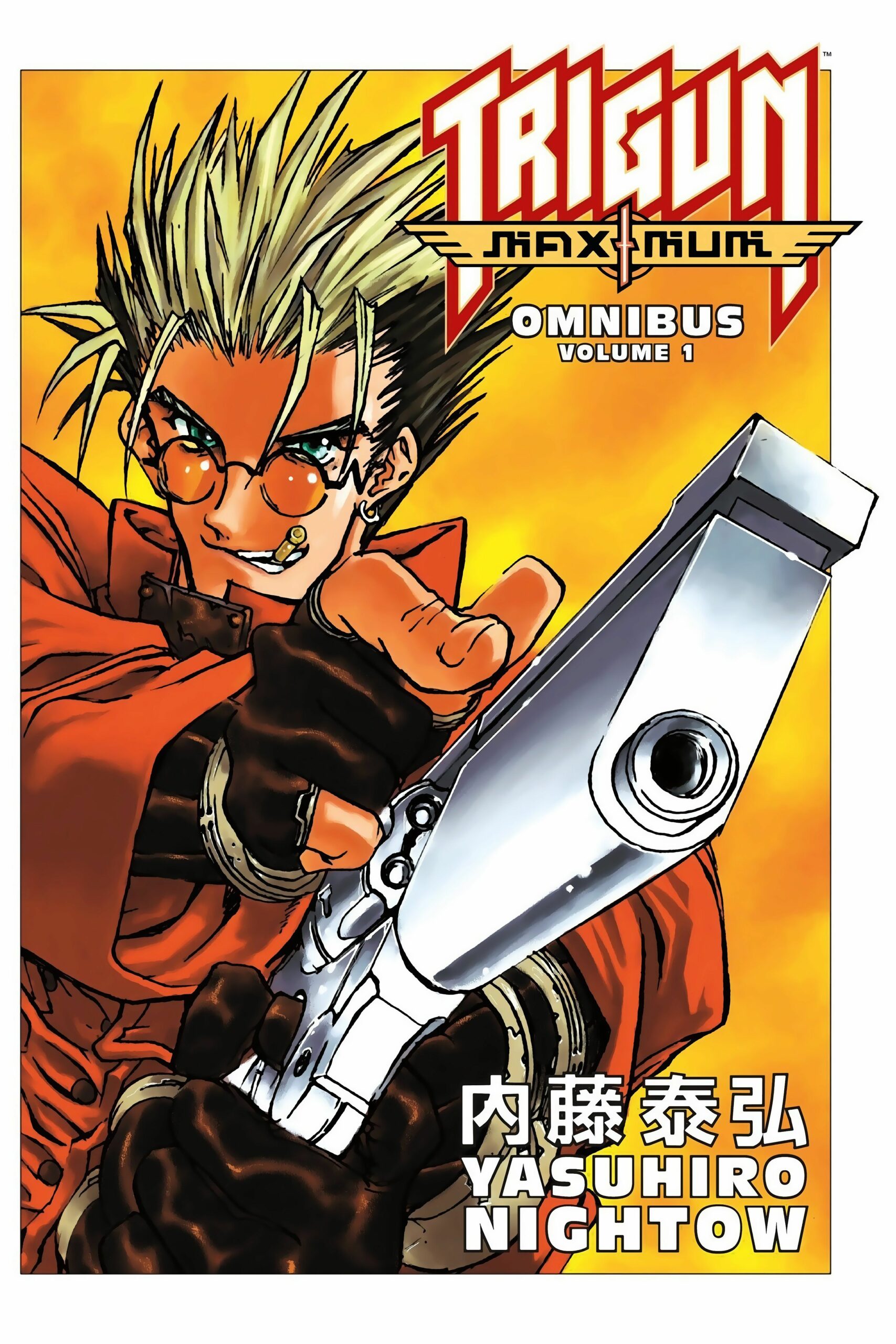 Это издание объединяет тома 1 и 2 оригинальной манги в одном роскошном томе объемом почти 700 страниц. Иллюстрированная и написанная Ясухиро Найто, книга рассказывает историю Вэша Паникера и враждебной инопланетной планеты, которую он называет домом. По сути научно-фантастический вестерн, Trigun повествует о попытках Вэша ненасильственно отговорить охотников за головами от попыток получить награду в $60 миллиардов за его поимку.