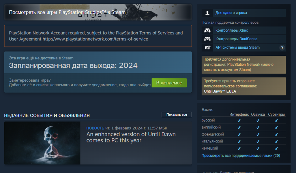 Компания Sony анонсировала изменения в политике использования аккаунтов PlayStation Network (PSN) для PC-версий своих игр. Теперь для некоторых тайтлов наличие PSN-аккаунта станет необязательным, что отличается от прежних требований. Кроме того, игроки, использующие PSN-аккаунт на PC, получат доступ к различным внутриигровым бонусам.