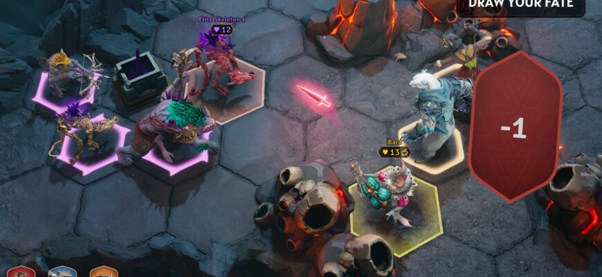 В то время как действие разворачивалось на экране телевизора перед нами, каждый из нас управлял своим персонажем с помощью телефона. У каждого персонажа есть своя колода карт с уникальными способностями – например, у Рейнджера была карта, которая при использовании выпускала пронзающий выстрел, способный поразить несколько целей на линии, а у Барда была карта, которая позволяла ему ненадолго очаровать цель и переместить ее в другую клетку на гексагональном поле. В Sunderfolk нет порядка ходов, что позволяет игрокам не только выбирать, что делать в свой ход, но и в каком порядке. Мы с товарищами по команде устраивали короткое обсуждение, чтобы обговорить наши варианты, иногда кто-то отменял свой ход в процессе планирования, чтобы кто-то другой мог пойти первым.