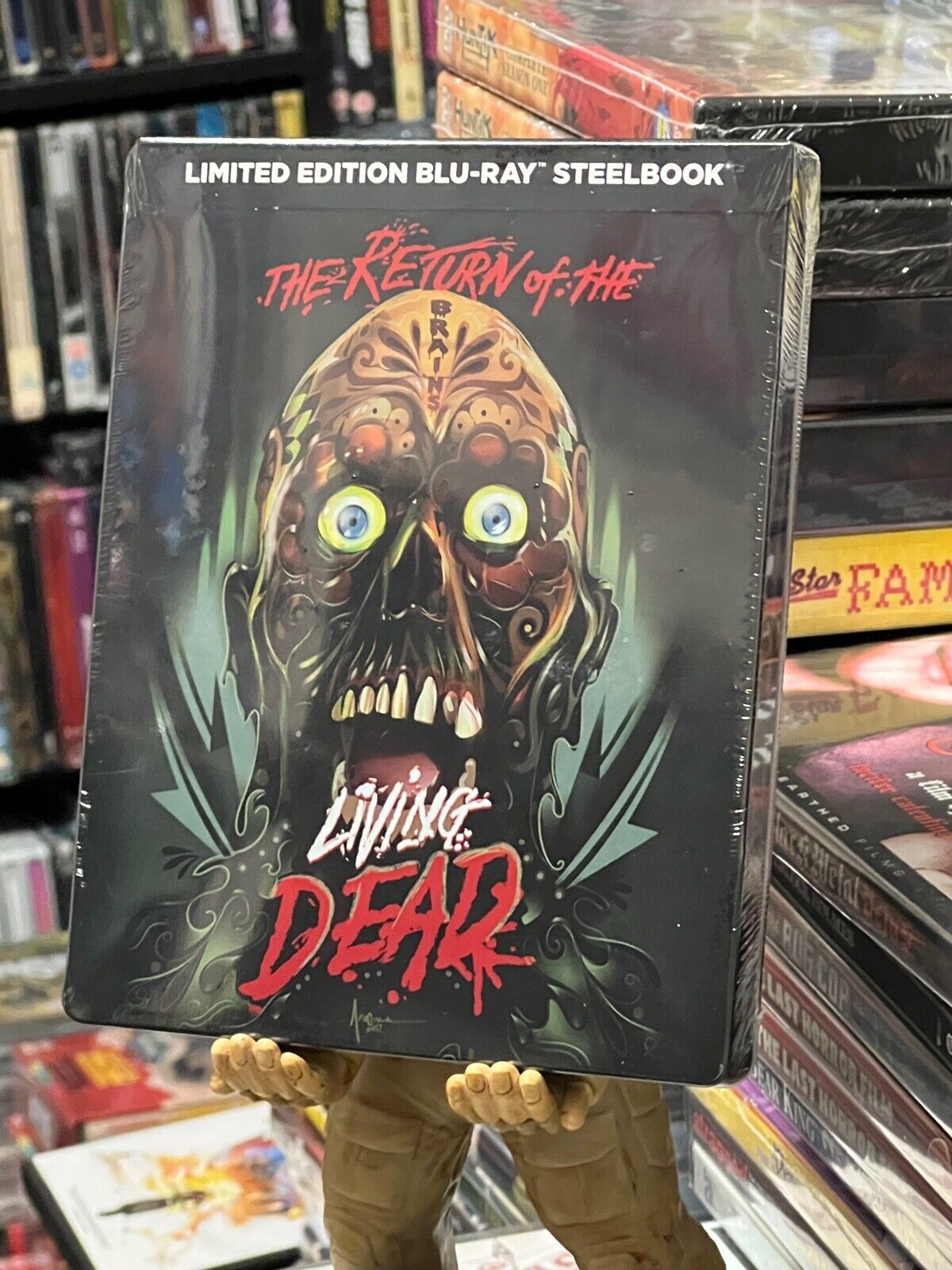 Хотя у нас нет списка бонусных материалов для предстоящего издания «Возвращения живых мертвецов», мы ожидаем, что оно предложит многие из тех же функций, что и текущие издания. Например, уже существует эксклюзивный 4K steelbook от Walmart за 35 долларов, и он включает в себя следующее:
