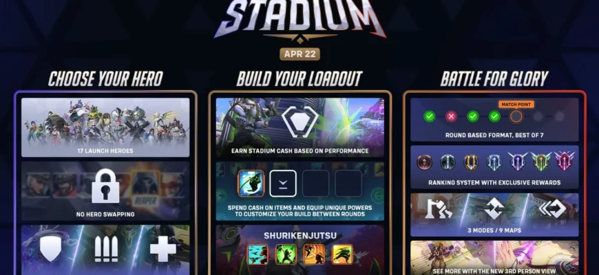 Blizzard опубликовала подробный обзор героев режима “Стадион” в Overwatch 2 и принципов работы новых умений, которые станут доступны с запуском режима 22 апреля. Каждый герой получит ряд изменений, которые разнообразят их игровые наборы. Однако, на старте, список доступных героев в “Стадионе” будет более ограниченным, чем в основной игре.